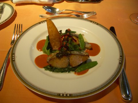 メインはお魚料理(さわらの燻製) デザートはチーズケーキ